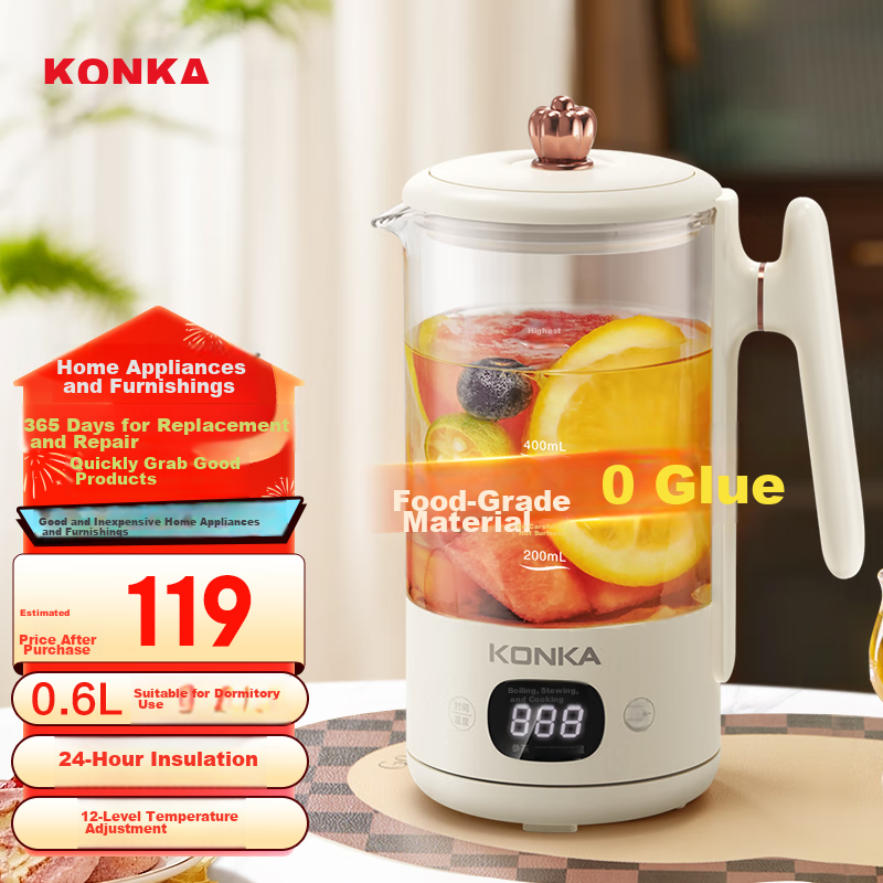 KONKA Mini Health Pot, Tea Maker, Office And Home Portable Tea Kettle, Constant Temperature Water Boiler, Small Flower Tea Pot, KYSH-0603E: сравнение цен, характеристики, фото, актуальное наличие и цены.