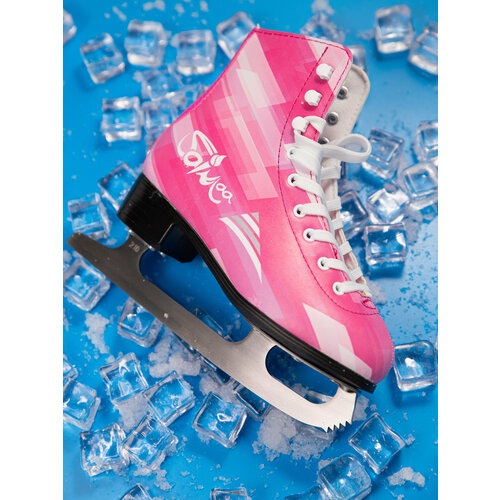 Фигурные коньки выполнены из искусственной кожи, она значительно легче натуральной, не промокает и не так быстро теряет внешний вид. Поддержка голеностопа - конек надежно фиксируется шнурками и петлями . Подошва из полипропилена с каблуком добавит эргономичности при скольжении по льду. Лезвие изготовлено из нержавеющей стали со специальным покрытием, защищающим от коррозии (чехол для лезвий в комплекте).