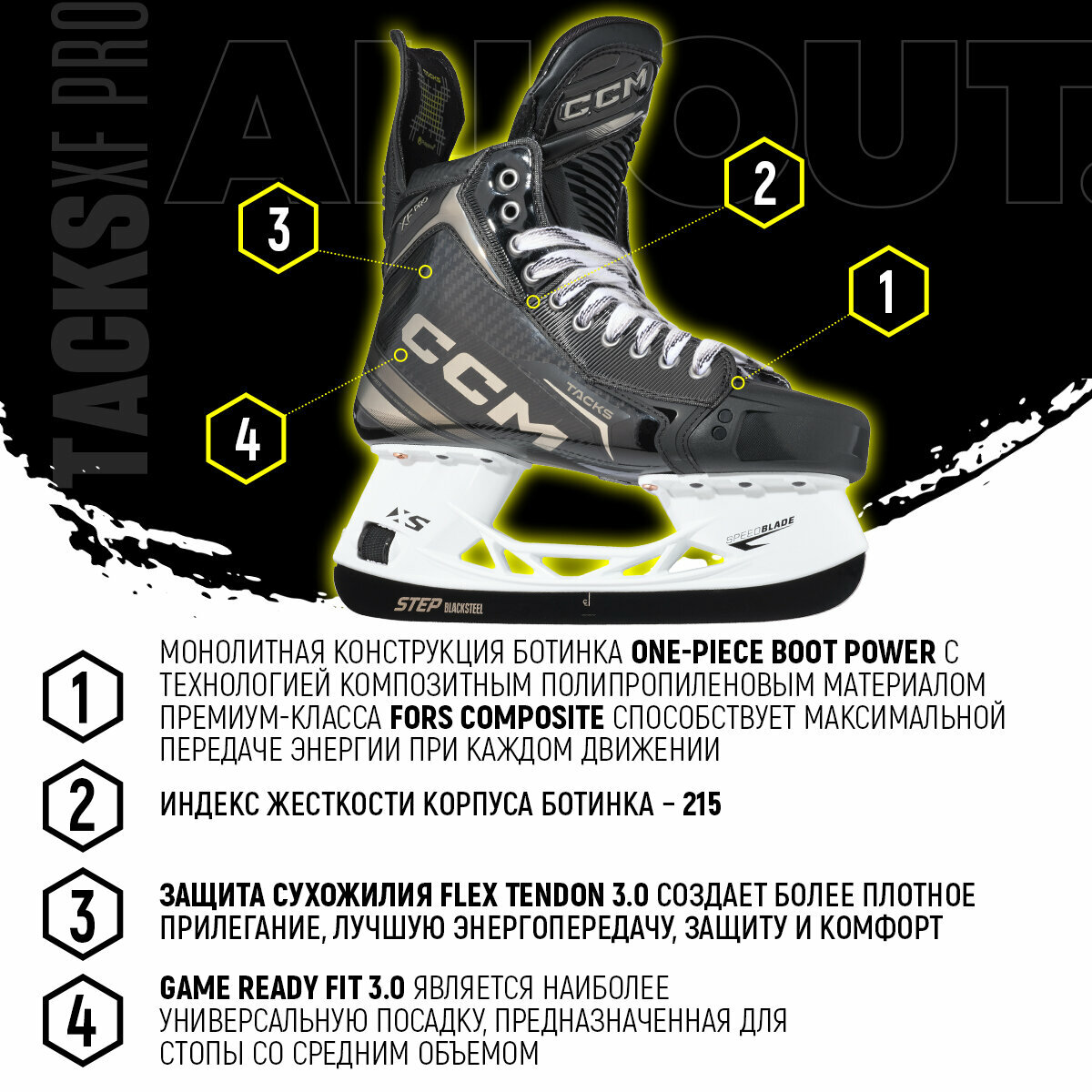 Коньки хоккейные мужские CCM SK TACKS XF PRO SR WIDE, 44 размер, 9.5 US, профессиональный, черный: сравнение цен, характеристики, фото, актуальное наличие и цены.