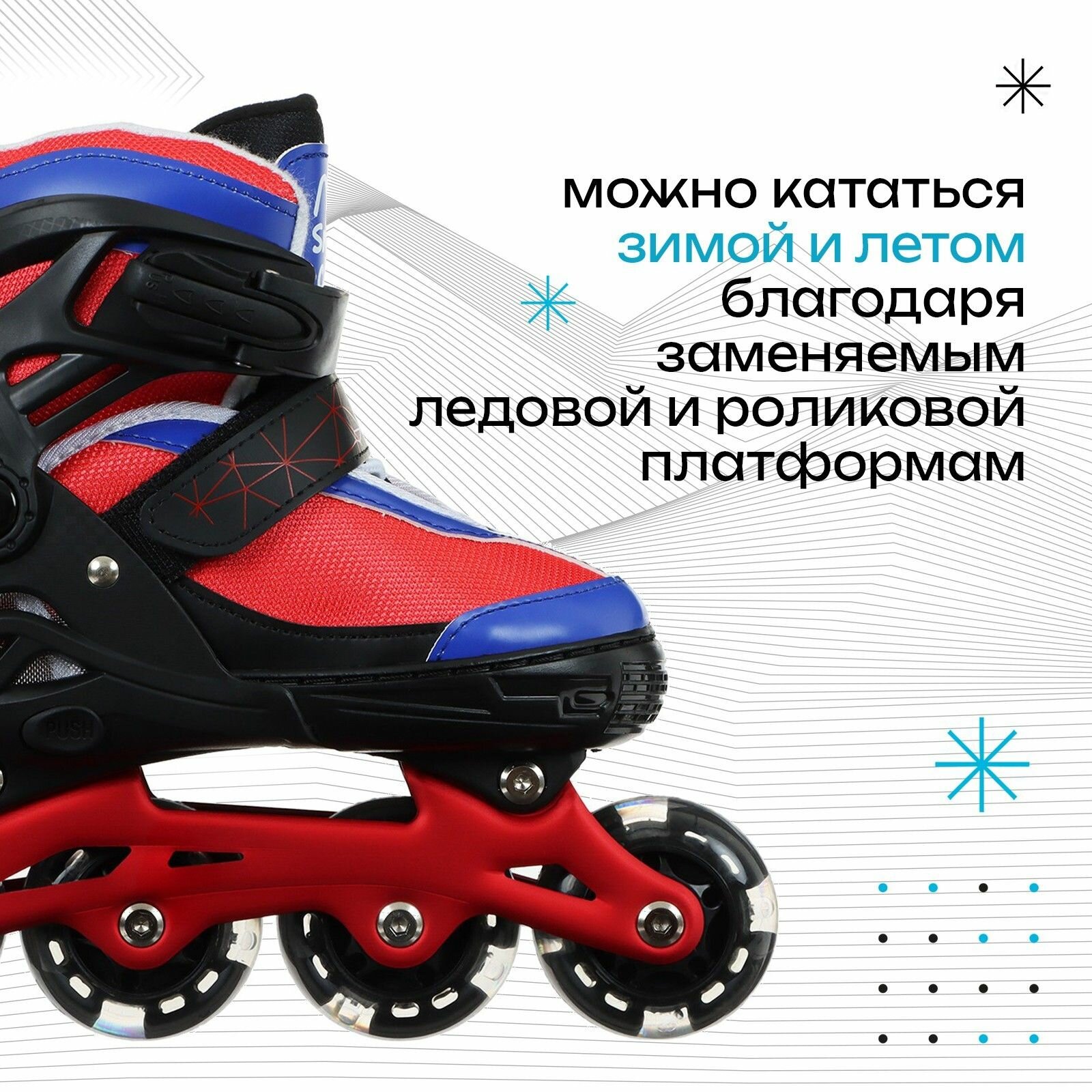 Детские ледовые фигурные коньки раздвижные с роликовой платформой, обувь для катания на льду и улице, ролики, р. 30-33: сравнение цен, характеристики, фото, актуальное наличие и цены.