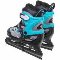 Коньки выполнены в размерах 34–37 — их можно отрегулировать с помощью боковой кнопки и надежной системы креплений. Подходят для катания на открытых катках и ледовых аренах. Конструкция рассчитана на повседневное использование и быструю адаптацию под анатомию растущей стопы.