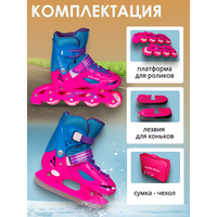 Коньки - ролики раздвижные Black Aqua AS-406 с двумя платформами (роликовой и коньковой) — универсальный вариант для детей для круглогодичного использования. Эта модель сочетает функции коньков и роликов, легко превращаясь из ледового инвентаря в ролики детские. Подходят для девочки и мальчика, для детей и подростков. Ключевые преимущества: • Универсальность: детские коньки и ролики в одном устройстве для круглогодичного катания • Роликовая платформа: прочная пластиковая рама, полиуретановые колеса на высокоточных подшипниках ABEC 5, тормоз • Платформа для коньков: морозоустойчивая пластиковая рама, лезвия из нержавеющей стали с заводской заточкой • Регулировка размера: растут с ребенком, раздвигаются на 4 размера под размер ребенка. • Полный комплект: ботинки, платформы для роликов и коньков, сумка-чехол для хранения и транспортировки — все включено • Прочные материалы и безопасность: защита пятки и носа, поддержка голеностопа, усиленный пластиковый корпус, мягкий комфортный ботинок выдерживают интенсивное использование детьми и подростками • Тройная фиксация: удобная шнуровка, ремень на липучке, прочная клипса-застежка. Выбирайте раздвижные ролики - коньки детские Black Aqua AS-406 для активных занятий детей, развития координации и силы. Коньки раздвижные позволяют менять конфигурацию за минуты на летние ролики. Ребенок легко освоит как ролики на асфальте летом, так и коньки на катке зимой. Отличный подарок на Новый год или День рождения для активного отдыха.