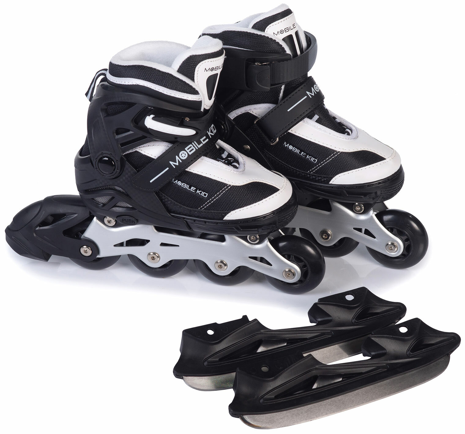Коньки-ролики Mobile Kid (2 в 1) UNI SKATE, размер L, черно-белые (33-36р.): сравнение цен, характеристики, фото, актуальное наличие и цены.