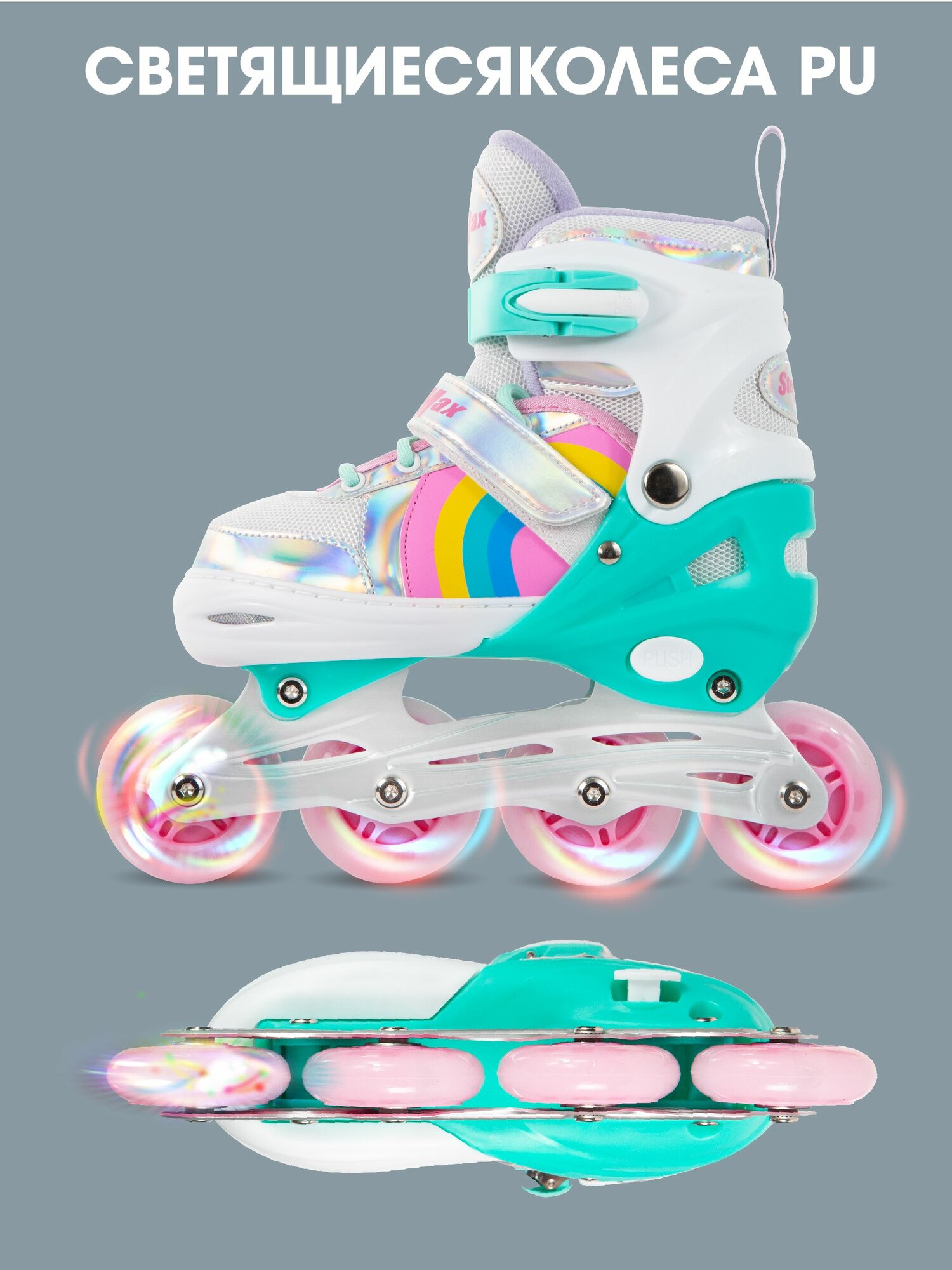 Коньки роликовые с защитой и шлемом , раздвижные светящиеся размер 33-36, розовые: сравнение цен, характеристики, фото, актуальное наличие и цены.