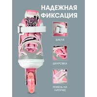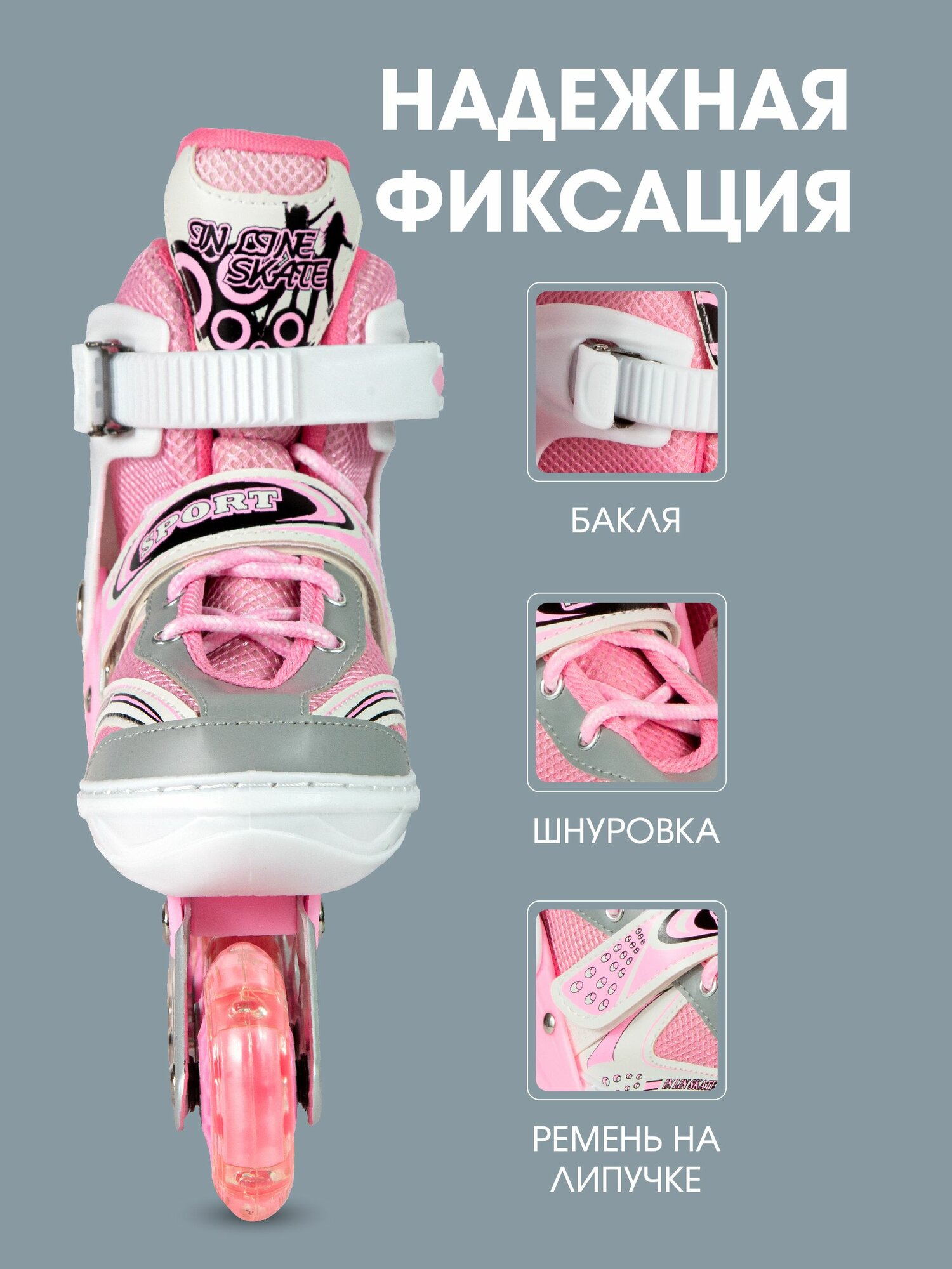 Купить Коньки роликовые с защитой и шлемом в сумке, раздвижные светящиеся размер 27-31, розовые с доставкой по всей России.
