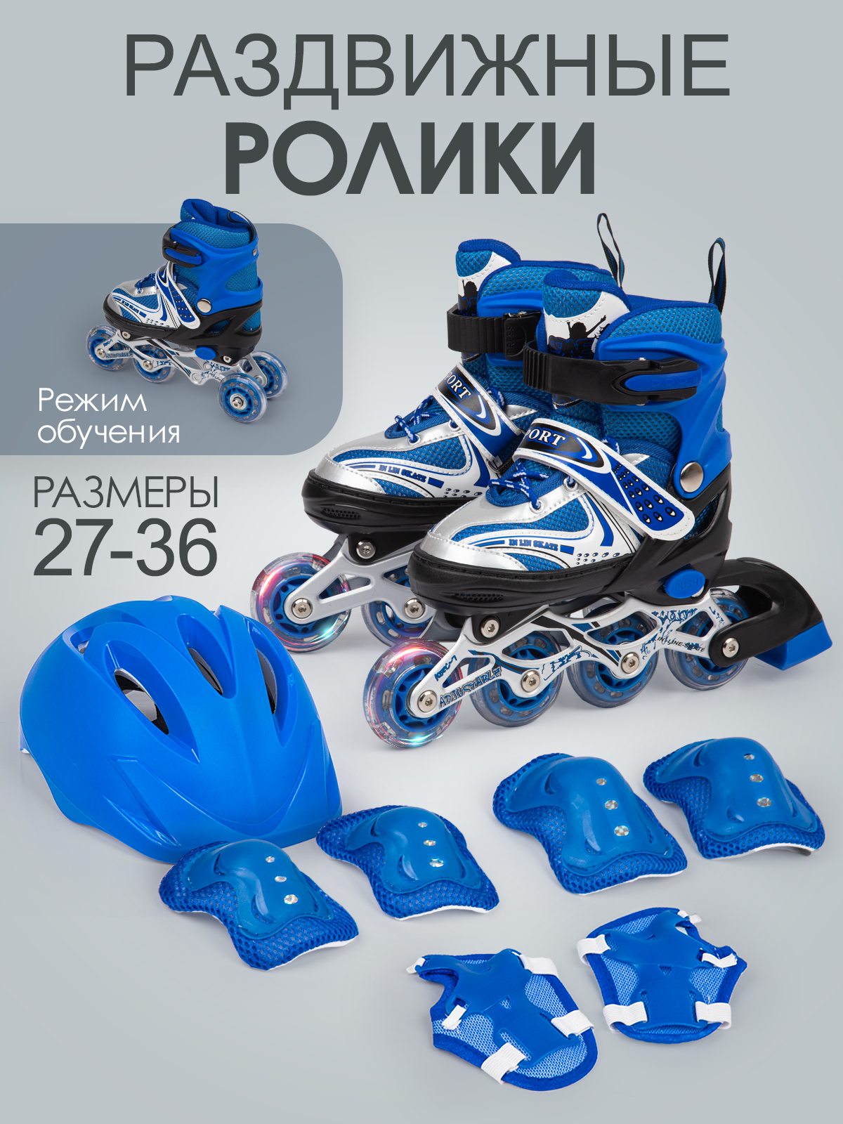 Коньки роликовые с защитой и шлемом в сумке, раздвижные светящиеся размер 27-31 RUS, синие: сравнение цен, характеристики, фото, актуальное наличие и цены.