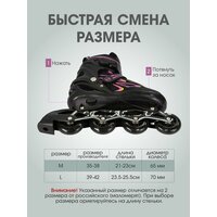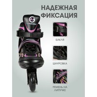 Купить Коньки роликовые в сумке, раздвижные светящиеся размер (33-36RUS)/35-38, черно-розовые с доставкой по всей России.
