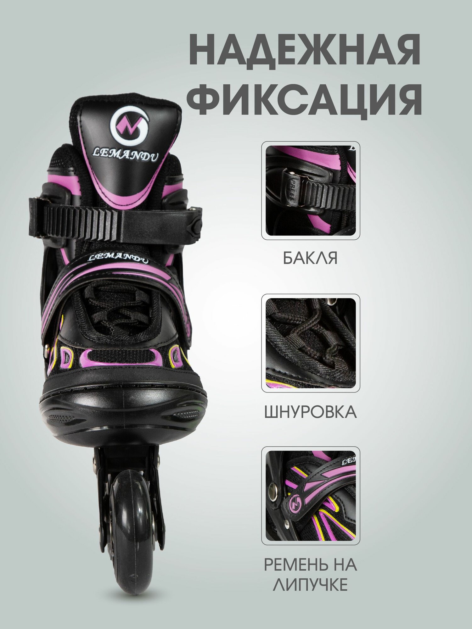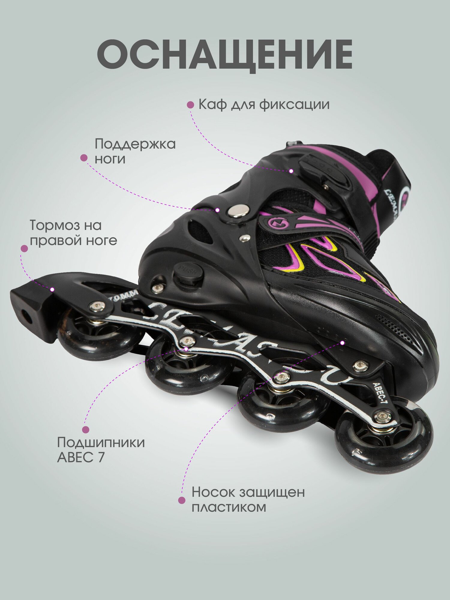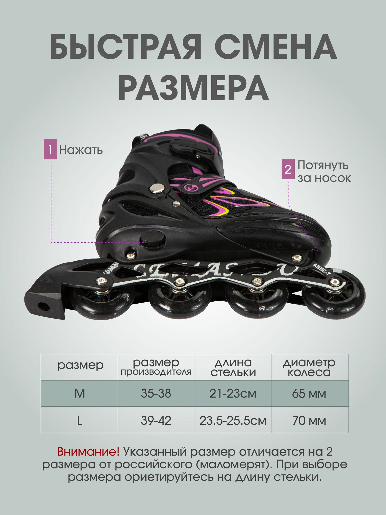 Коньки роликовые в сумке, раздвижные светящиеся размер (33-36RUS)/35-38, черно-розовые: сравнение цен, характеристики, фото, актуальное наличие и цены.