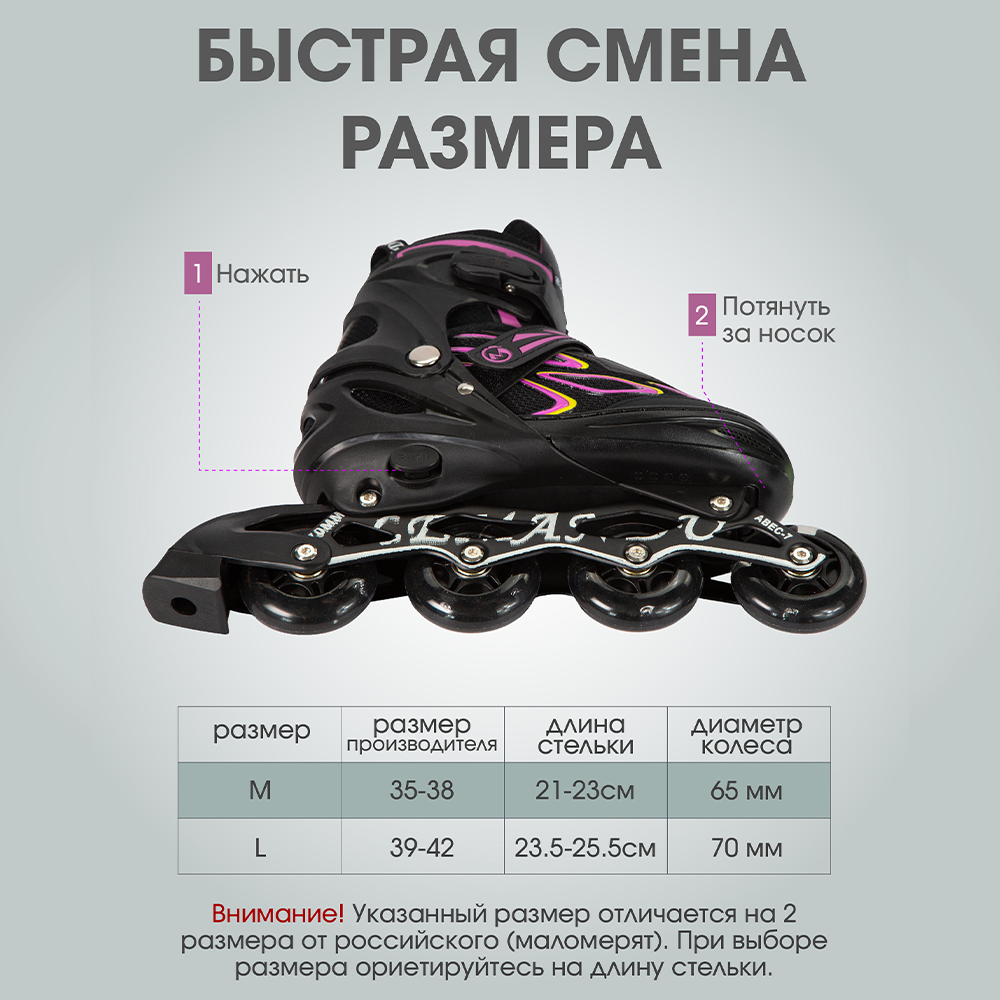 Коньки роликовые в сумке, раздвижные светящиеся размер (37-40 RUS), черно-розовые: сравнение цен, характеристики, фото, актуальное наличие и цены.