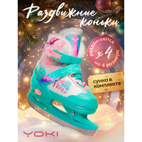 Купить Коньки YOKI PLOMBIR, детские, фигурные, раздвижные, цвет бирюзовый с доставкой по всей России.