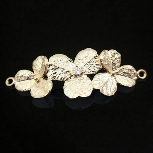 Купить Коннектор, 40х14х3мм, Корея, Клевер тройной с фианитом, базовый материал — латунь, матовый позолоченный, 1 шт. с доставкой по всей России. Коннектор, 40х14х3мм, Корея, Клевер тройной с фианитом, базовый материал — латунь, матовый позолоченный, 1 шт.: сравнение цен, характеристики, фото, актуальное наличие и цены.