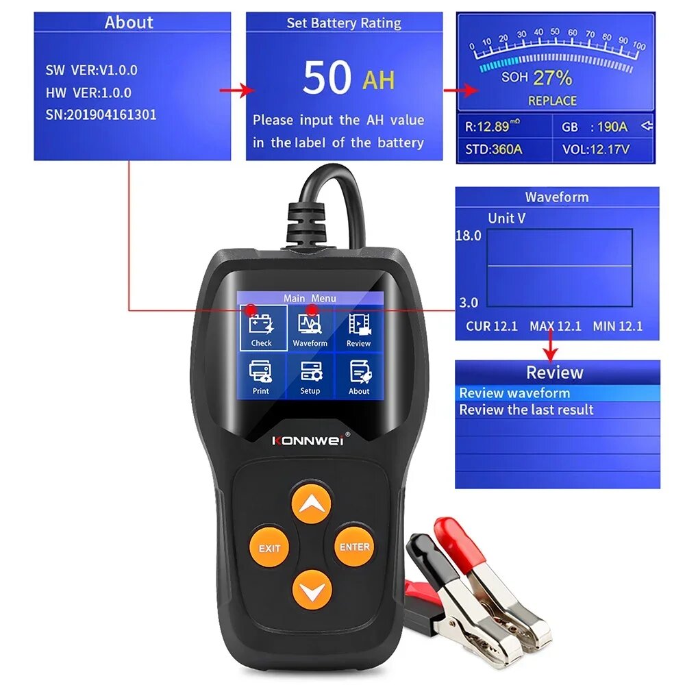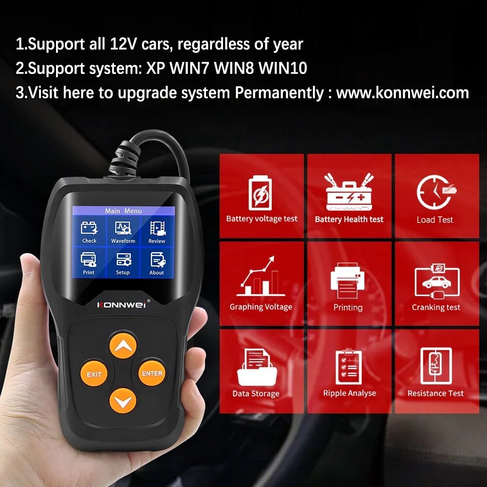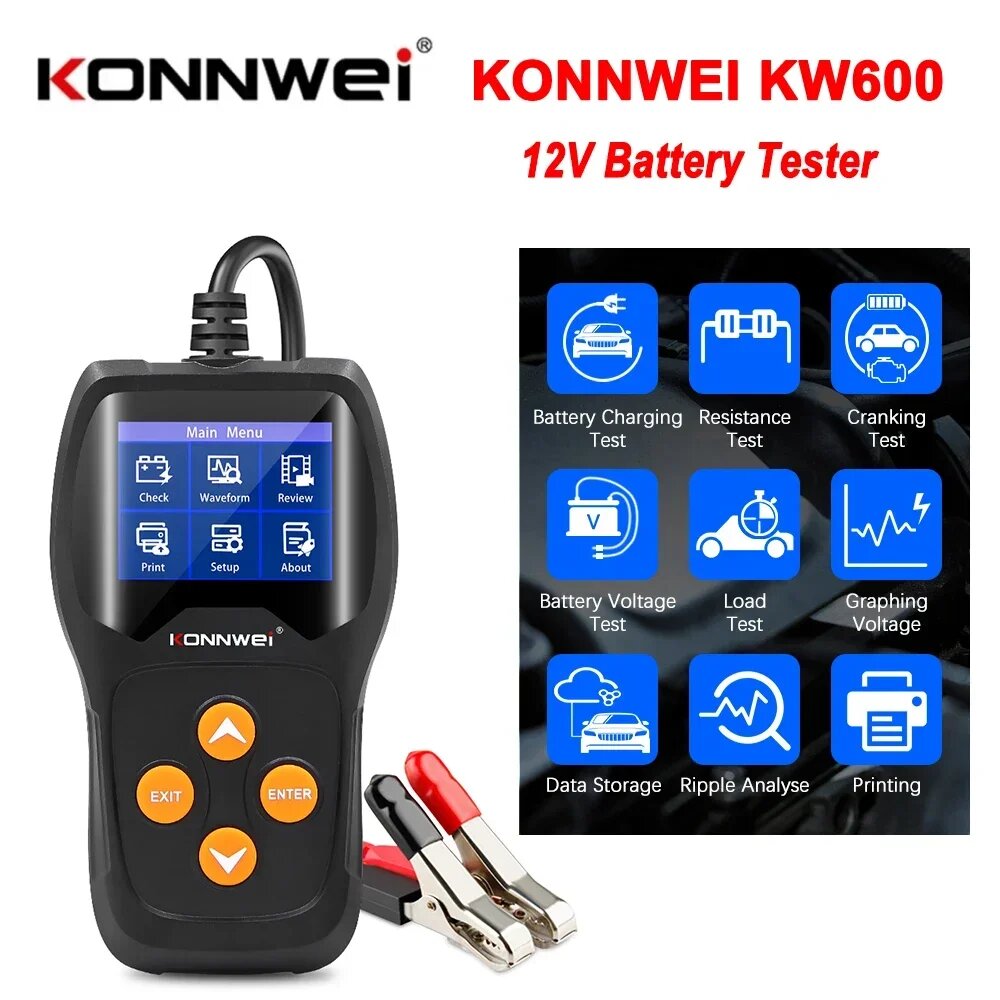 KONNWEI KW600 12 В тестер автомобильного аккумулятора от 100 до 2000CCA 12 В аккумуляторные инструменты для автомобиля быстрая зарядка диагностика, KW600: сравнение цен, характеристики, фото, актуальное наличие и цены.