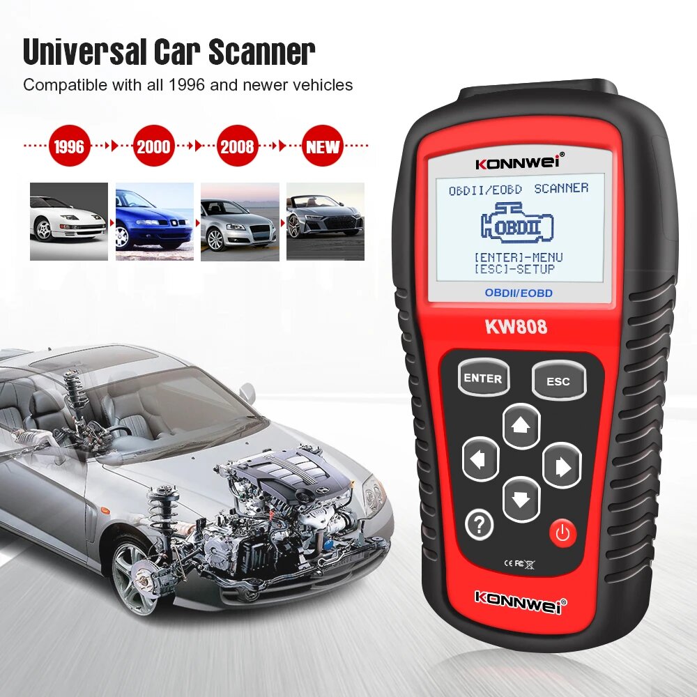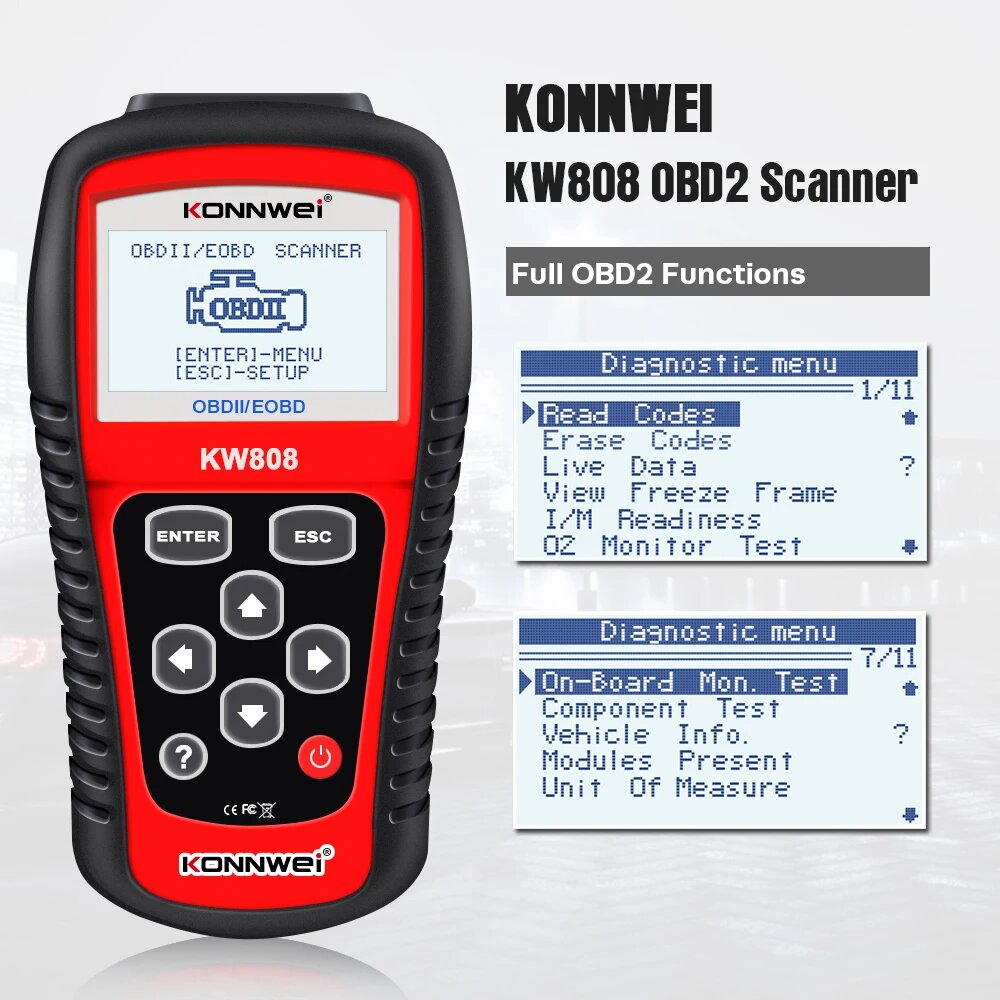 KONNWEI KW808 OBD 2 Автомобильный сканер OBD2 Автомобильный диагностический сканер Инструмент для считывания кодов складского двигателя Odb Инструменты для автомобилей, KW808: сравнение цен, характеристики, фото, актуальное наличие и цены.