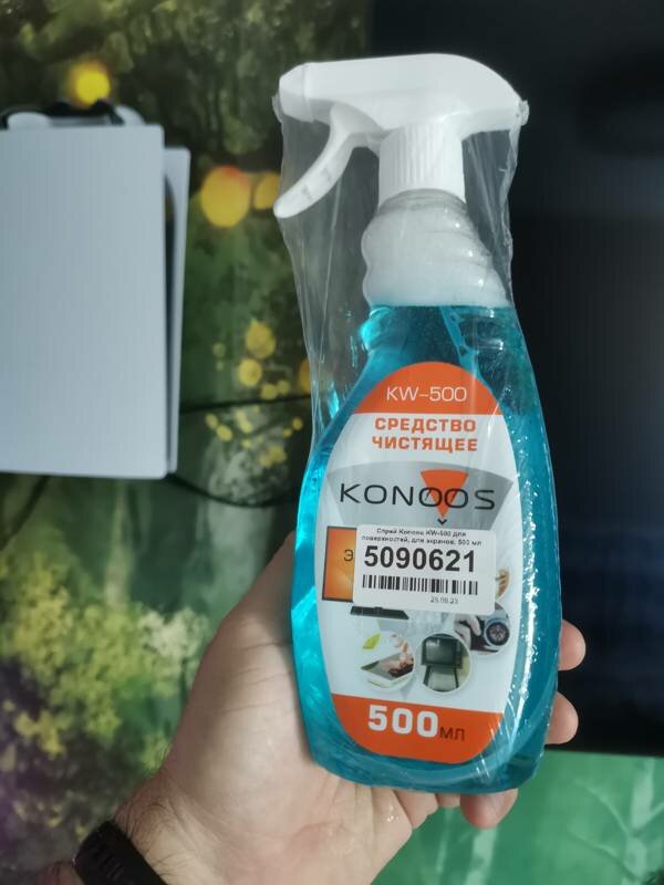 Спрей для экранов Konoos 500 мл KW-500 предназначен для очистки экранов мониторов, телевизоров, стеклянных и оптических поверхностей (оптика фото- и видеокамер и телефонов). Эффективно удаляет пыль, грязь, жирные отпечатки и другие загрязнения. Не оставляет разводов. Назначение: для мониторов. Антистатик: да. Объем: 0.5 л. Состав: вода > 30%, 1-пропанол < 5%, нПАВ < 5%, консервант < 5%, антистатический компонент < 5%. Вид упаковки: бутылка с тригером. Тип: чистящий спрей. Вес нетто: 0.53 кг.
