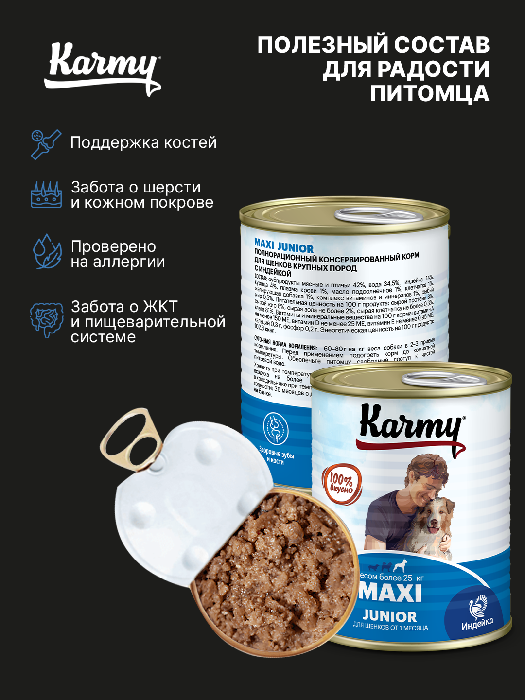Консервированный корм KARMY MAXI Junior MIX для щенков крупных пород (ягненок/телятина/индейка) 12шт 340г.: сравнение цен, характеристики, фото, актуальное наличие и цены.