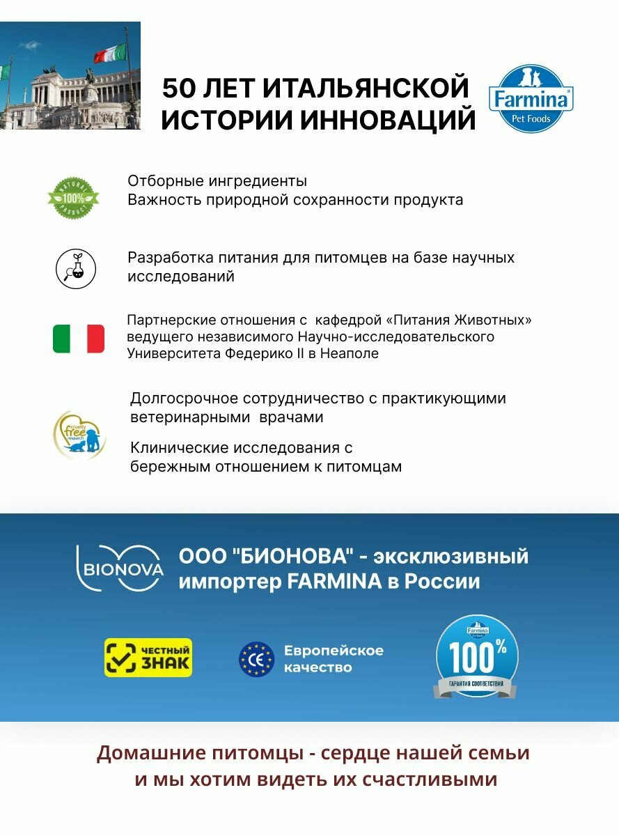 Полнорационный влажный корм для котят, беременных и кормящих кошек. Farmina N&D беззерновой для кошек это линия натуральных кормов, не содержащих зерновых, специально разработанных с учетом плотоядной природы кошек. Данная диета предотвращает ожирение и диабет из-за низкого гликемического индекса и содержит только природные антиоксиданты, богата экстрактом токоферолов, которые способствуют естественной сохранности продукта. Farmina N&D беззерновой для кошек также богат высококачественными витаминами, благодаря включению после процесса приготовления, которая предотвращает термический и физический стресс. Различные формулы, разработанные, чтобы удовлетворить любой вкус и потребность в питании.