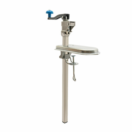 Нож для консервных банок настольный механический. Общая длина 60 см. Профиль, обеспечивающий регулируемый рабочий диапазон, позволяет открывать банки высотой до 40 см.