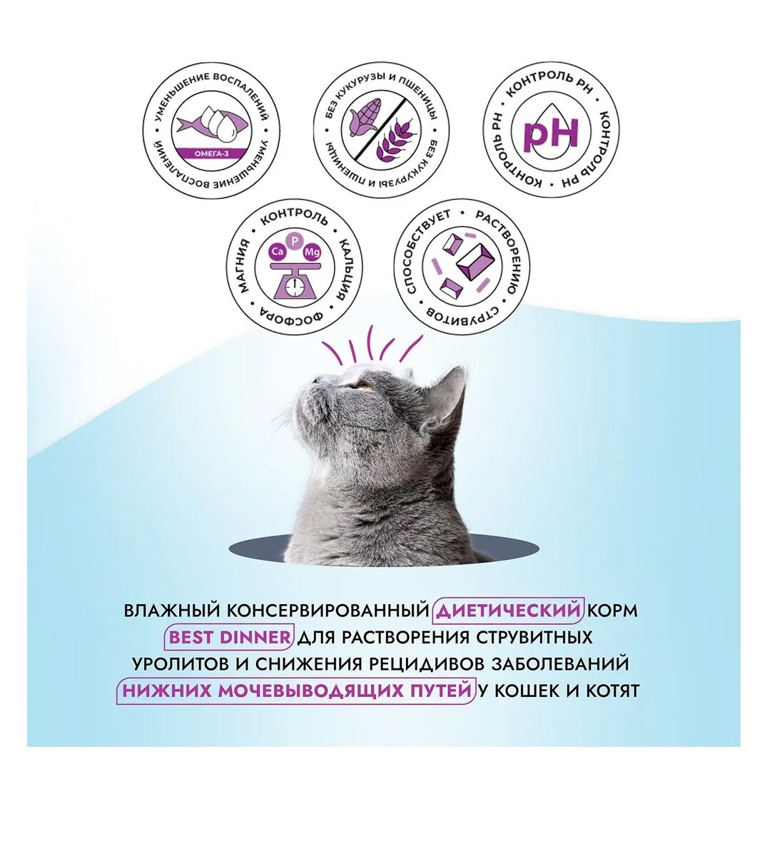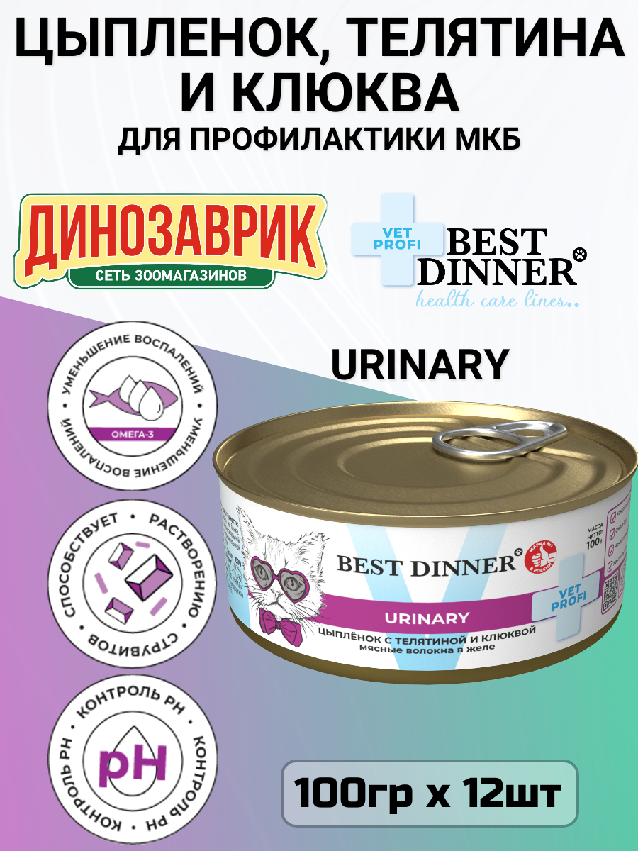 Консервы для кошек Best Dinner Exclusive Vet Profi Urinary Цыпленок с телятиной и клюквой 12шт х 100г: сравнение цен, характеристики, фото, актуальное наличие и цены.
