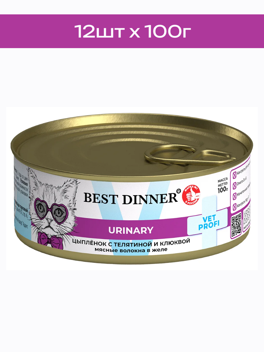 Консервы для кошек Best Dinner Vet Profi, для кастрированных котов и стерилизованных кошек, цыпленок с телятиной и клюквой в желе, 12 шт х 100 г: сравнение цен, характеристики, фото, актуальное наличие и цены.