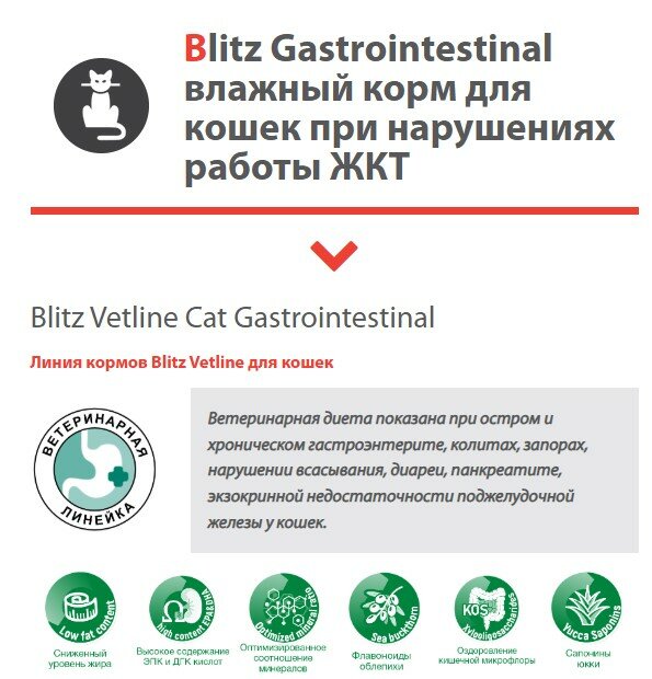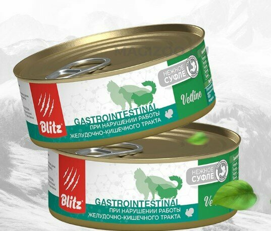 Консервы для кошек Blitz Vetline Gastrointestinal при нарушении работы желудочно-кишечного тракта, упаковка 100 гр х 16 шт: сравнение цен, характеристики, фото, актуальное наличие и цены.