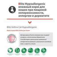 Купить Консервы для кошек Blitz Vetline Hypoallergenic при пищевой аллергии, непереносимости и атопическом дерматите, упаковка 100 гр х 16 шт с доставкой по всей России.