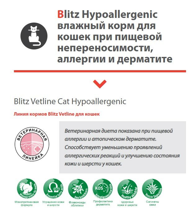 Консервы для кошек Blitz Vetline Hypoallergenic при пищевой аллергии, непереносимости и атопическом дерматите, упаковка 100 гр х 16 шт: сравнение цен, характеристики, фото, актуальное наличие и цены.