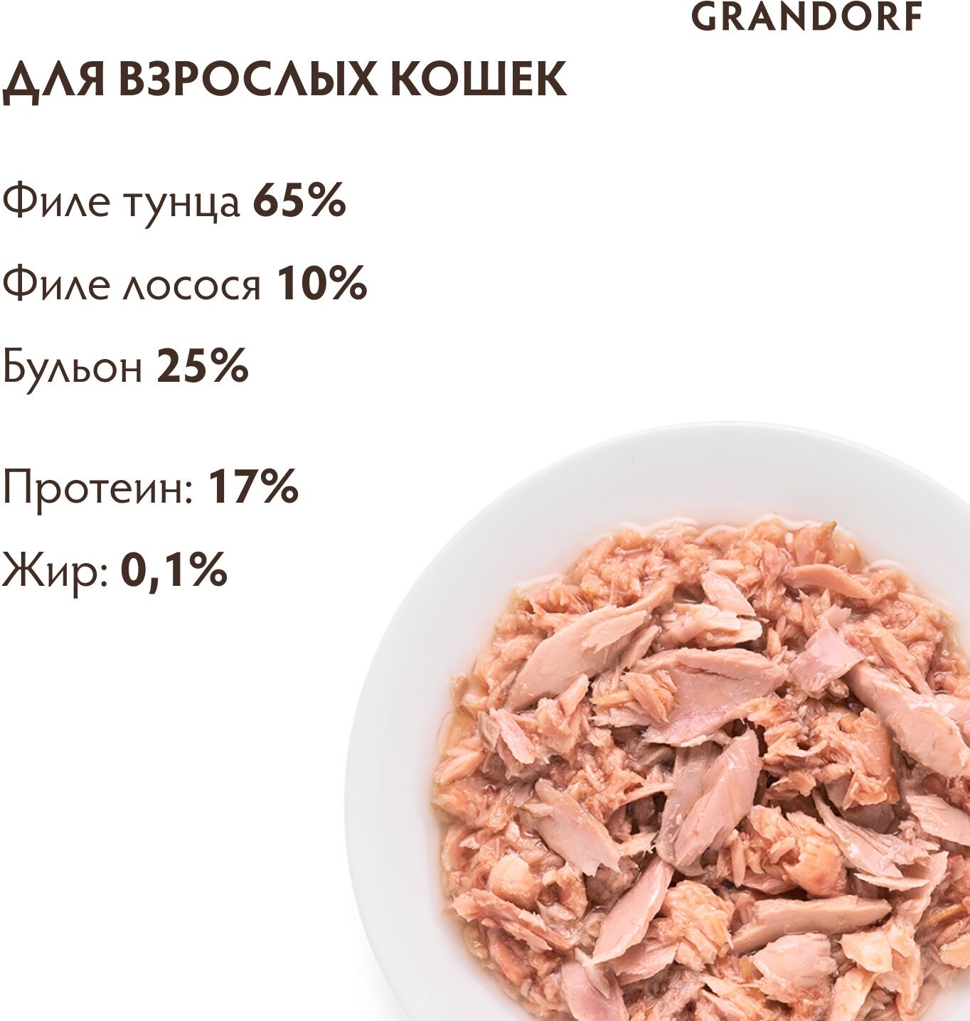 Консервы для кошек Grandorf Holistic Филе тунца с лососем в собственном соку, 6 шт х 70 г: сравнение цен, характеристики, фото, актуальное наличие и цены.