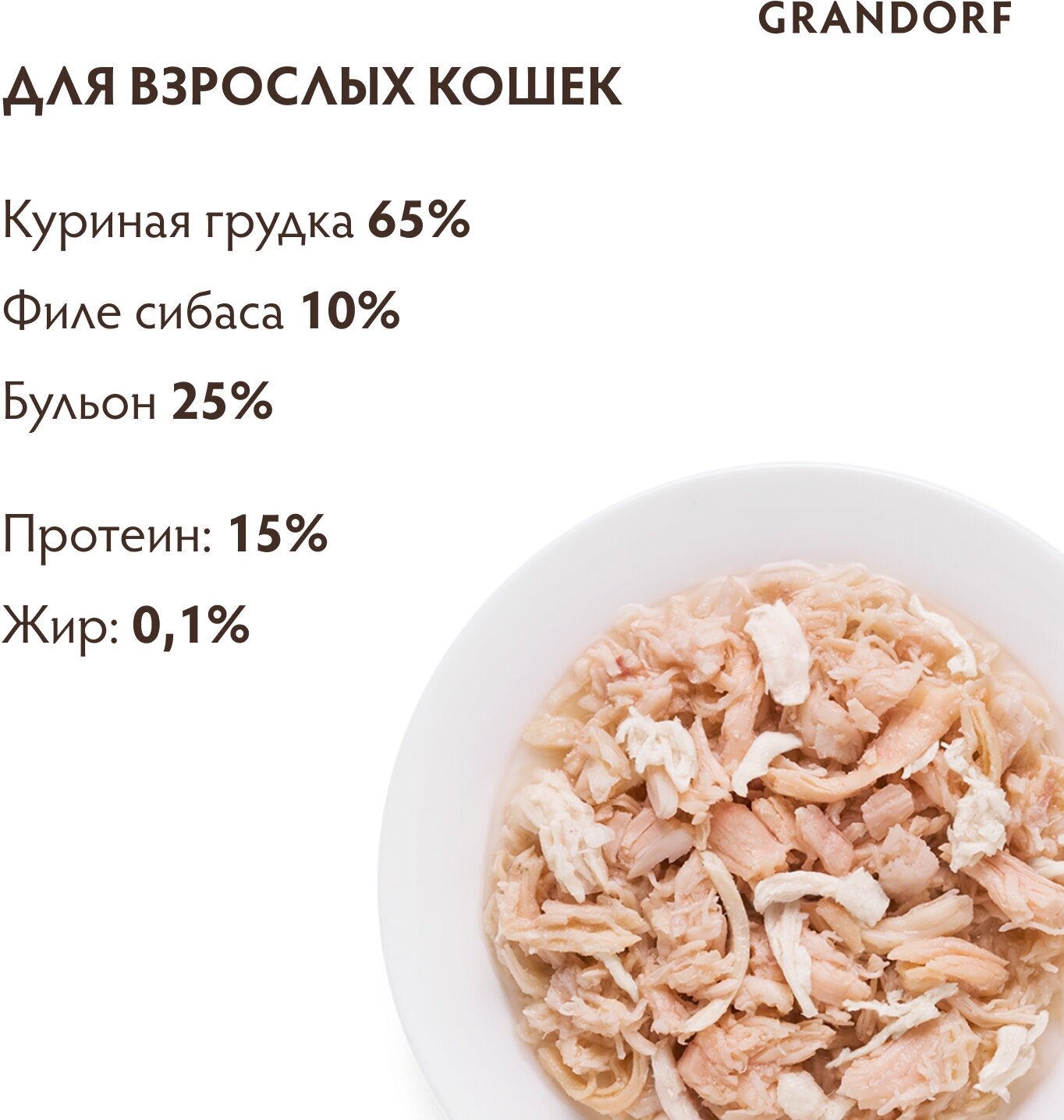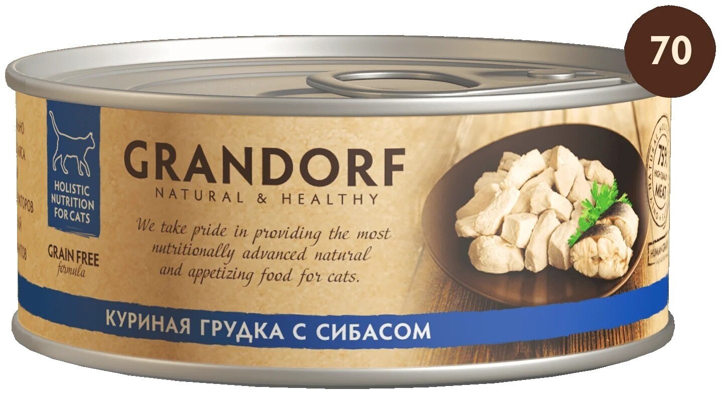 Консервы для кошек Grandorf Holistic Куриная грудка с сибасом, 6 шт х 70 г: сравнение цен, характеристики, фото, актуальное наличие и цены.