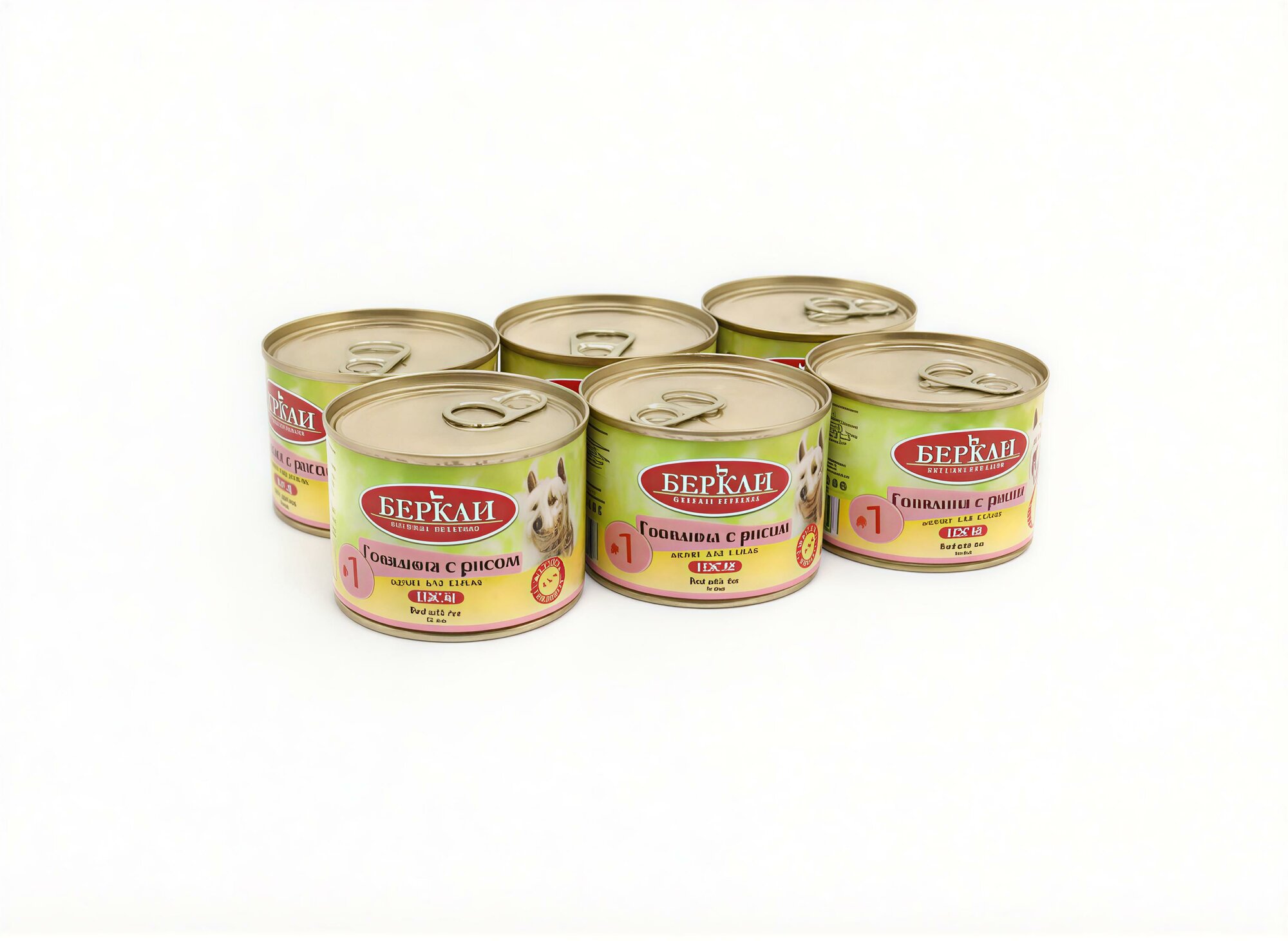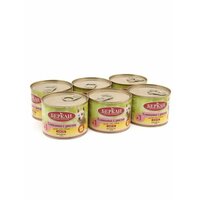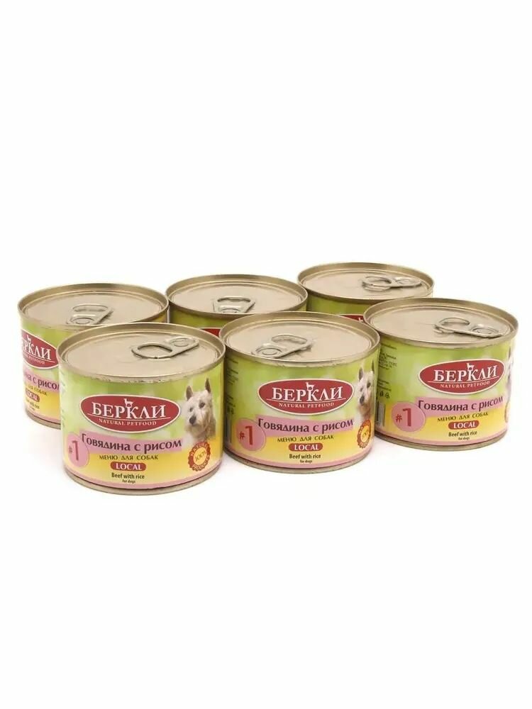 Корм Berkley Menu №1 говядина с рисом упакован в удобные консервные банки по 200 гр каждая. В комплекте идут 6 банок, что позволяет обеспечить вашего питомца кормом на длительное время.
