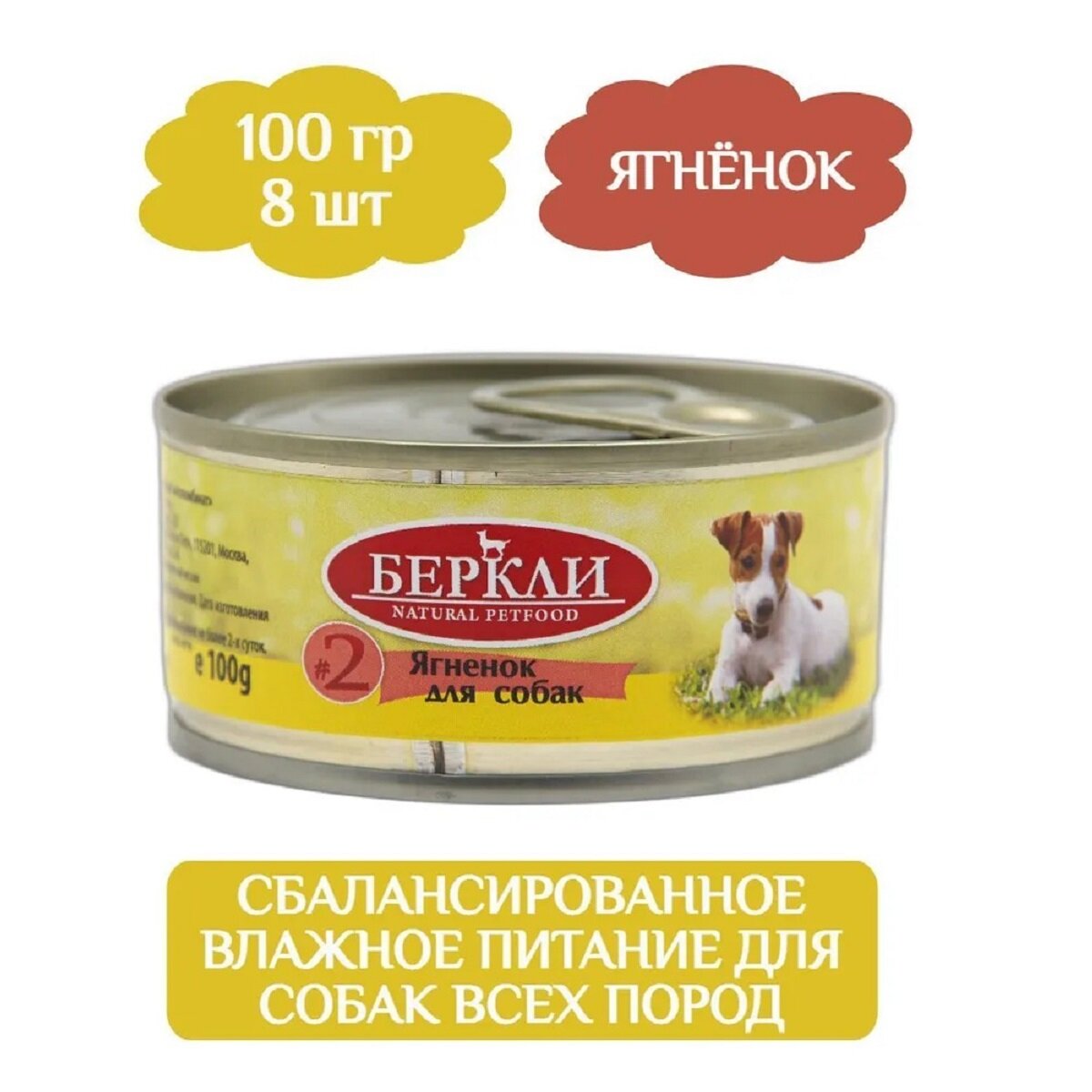 Berkley Консервы для собак 100г №2 ягненок, 8 штук: сравнение цен, характеристики, фото, актуальное наличие и цены.