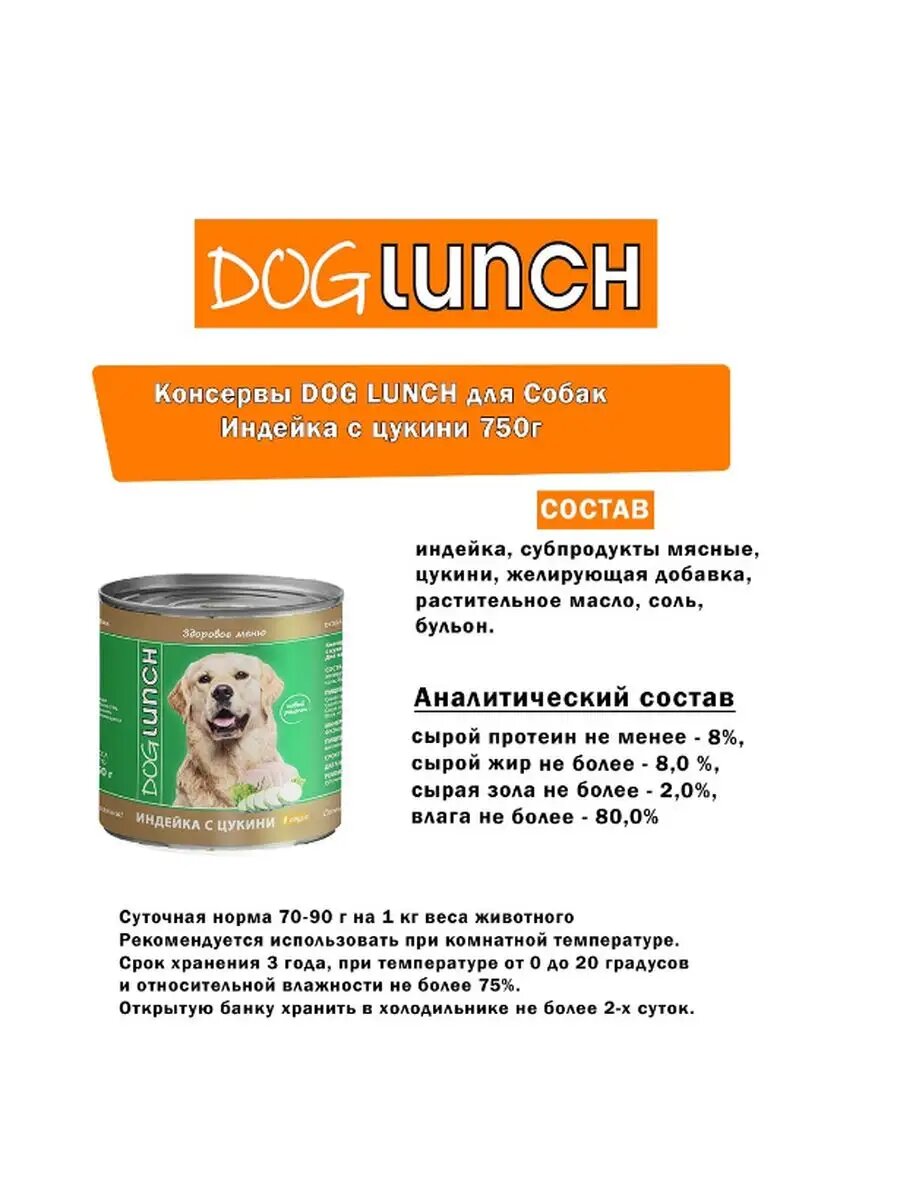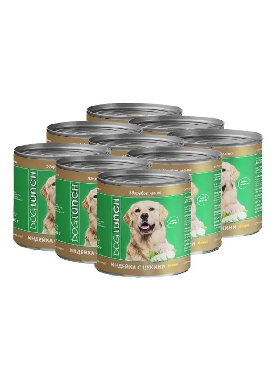Консервированный корм линейка "doglunch" индейка с цукини в соусе. Для взрослых собак всех пород.