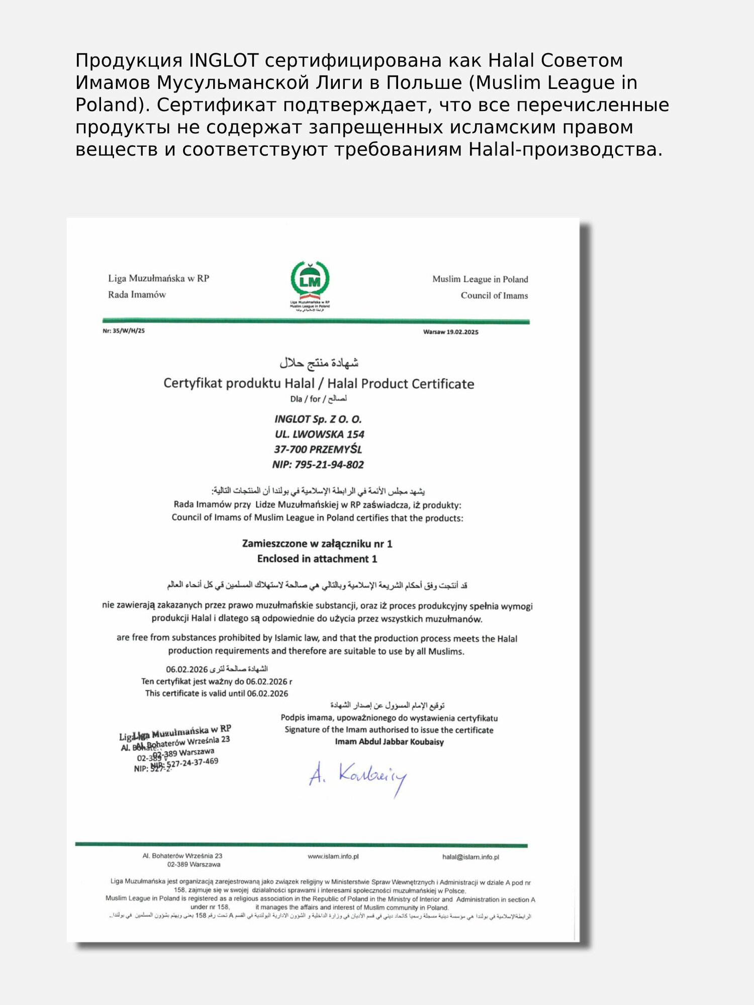 | Не содержит | парабены, продукты животного происхождения, тальк |