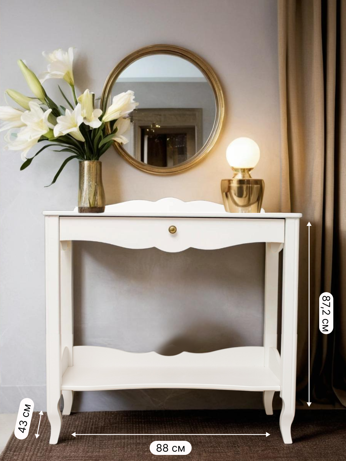 Купить Консоль «Асти Prime», белая, МДФ, классический стиль, 43 см x 88 см x 87 см с доставкой по всей России. Консоль «Асти Prime», белая, МДФ, классический стиль, 43 см x 88 см x 87 см: сравнение цен, характеристики, фото, актуальное наличие и цены.