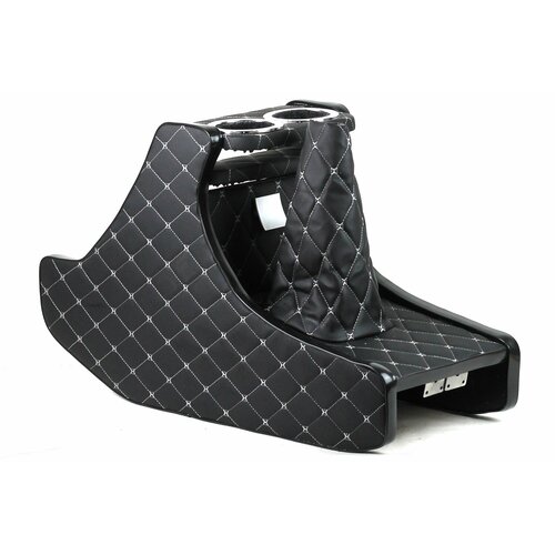 Имеет отсеки для документов и мелочевки , а также два подстаканника в верхней части консоли.