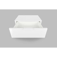 Фурнитура и внутреннее пространство В навесной консоли MD 7114 применяются направляющие скрытого монтажа с доводчиками, обеспечивающие плавное и бесшумное закрывание. Внутреннее пространство для хранения обеспечивается вместительным ящиком, оснащенным системой автоматической доводки при закрывании.
