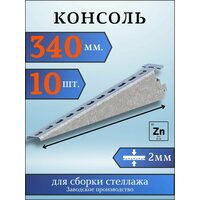 Консоль оцинкованная 340мм (комплект 10 шт) для металлического стеллажа К1162 цУТ2.5 2мм сталь оцинк. Соэми Н0112311513