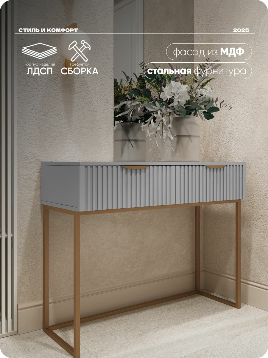 Консоль на квадратных ножках Серая, туалетный столик 100х40х80 см: сравнение цен, характеристики, фото, актуальное наличие и цены.