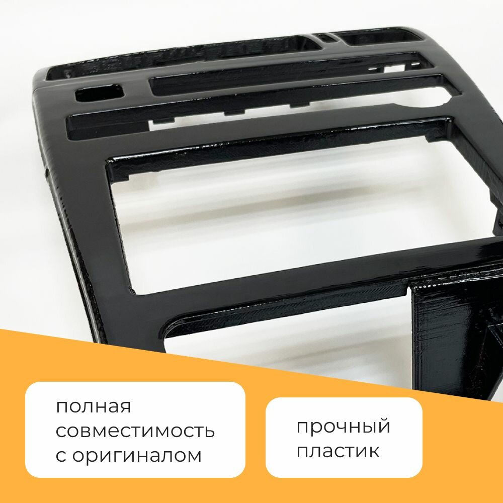 Изделие поставляется под покраску, что даёт возможность подстроить его под любой интерьер. Вы можете выбрать любой оттенок или фактуру для покраски консоли, чтобы она идеально вписалась в салон вашего автомобиля. Панель изготовлена по технологии FDM (Fused Deposition Modeling). В процессе FDM-печати материал наносится послойно, что обеспечивает изделию отличную жёсткость и устойчивость к износу.