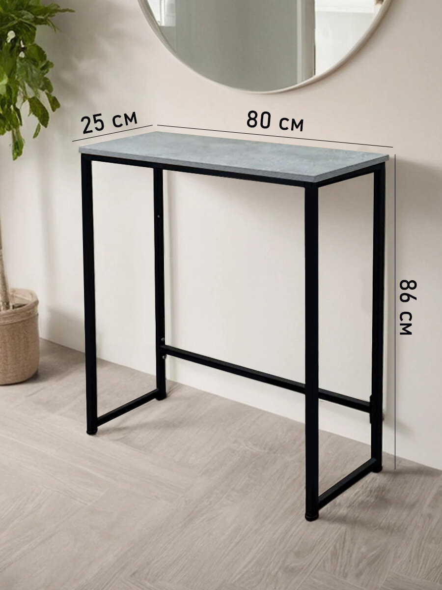 Стол консольный узкий в стиле лофт станет изящным украшением вашей прихожей и коридоре, привнесет в дом нотки изысканности. Стильный дизайн подходит под любой интерьер — от классики до минимализма. Прочный черный матовый каркас выполнен из металлического профиля 20х20 мм. Благодаря своей надежности, изделие выдержит высокую нагрузку до 100 кг.