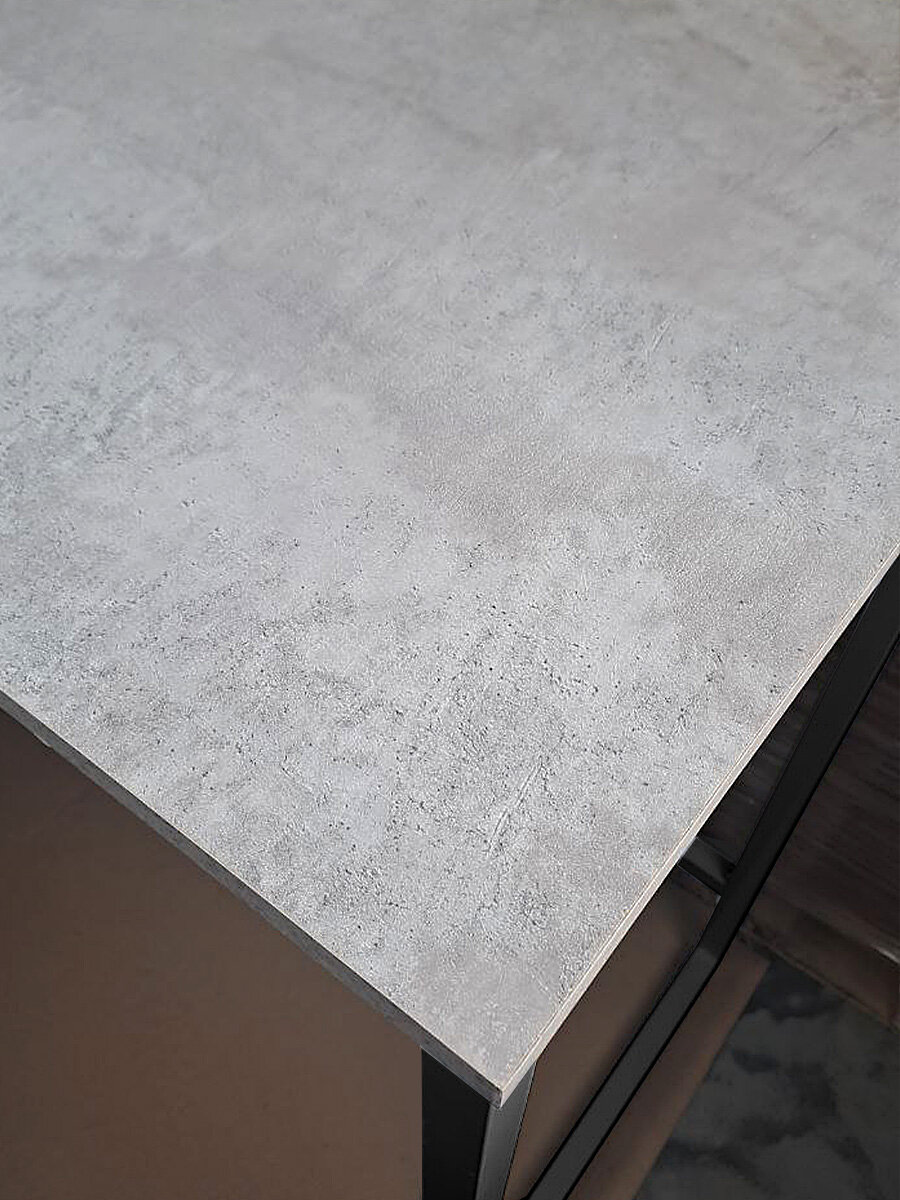 Прямоугольная деревянная столешница изготовлена из ламинированного ДСП в сером цвете «Цемент». Это покрытие делает изделие долговечным и не требует особого ухода. Ножки оснащены специальными заглушками, которые предотвращают появление царапин на полу, а так же регулировкой по высоте.