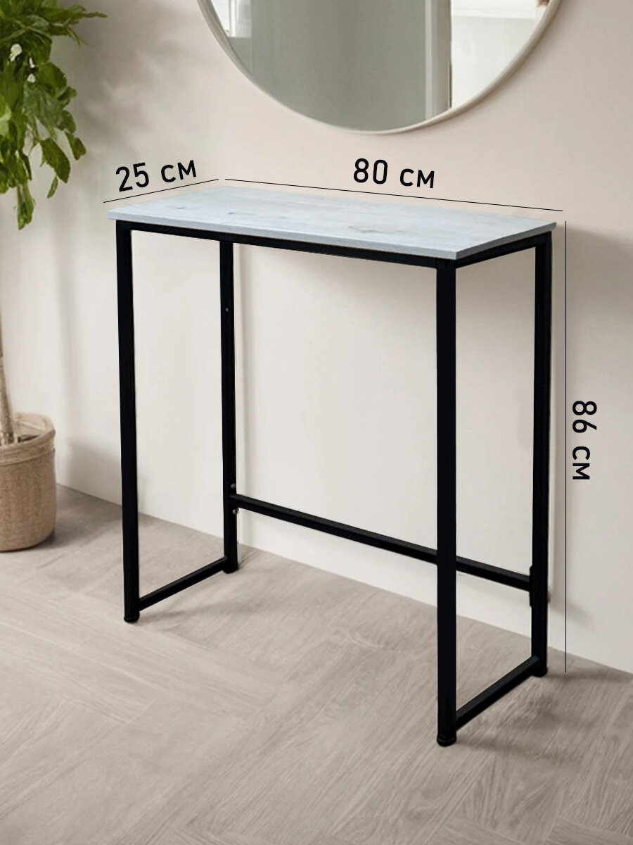 Стол консольный узкий в стиле лофт станет изящным украшением вашей прихожей и коридоре, привнесет в дом нотки изысканности. Стильный дизайн подходит под любой интерьер — от классики до минимализма. Прочный черный матовый каркас выполнен из металлического профиля 20х20 мм. Благодаря своей надежности, изделие выдержит высокую нагрузку до 100 кг.