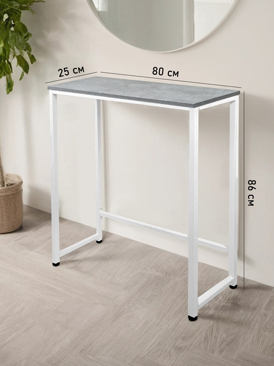 Стол консольный узкий в стиле лофт станет изящным украшением вашей прихожей и коридоре, привнесет в дом нотки изысканности. Стильный дизайн подходит под любой интерьер — от классики до минимализма. Прочный белый глянцевый каркас выполнен из металлического профиля 20х20 мм. Благодаря своей надежности, изделие выдержит высокую нагрузку до 100 кг.