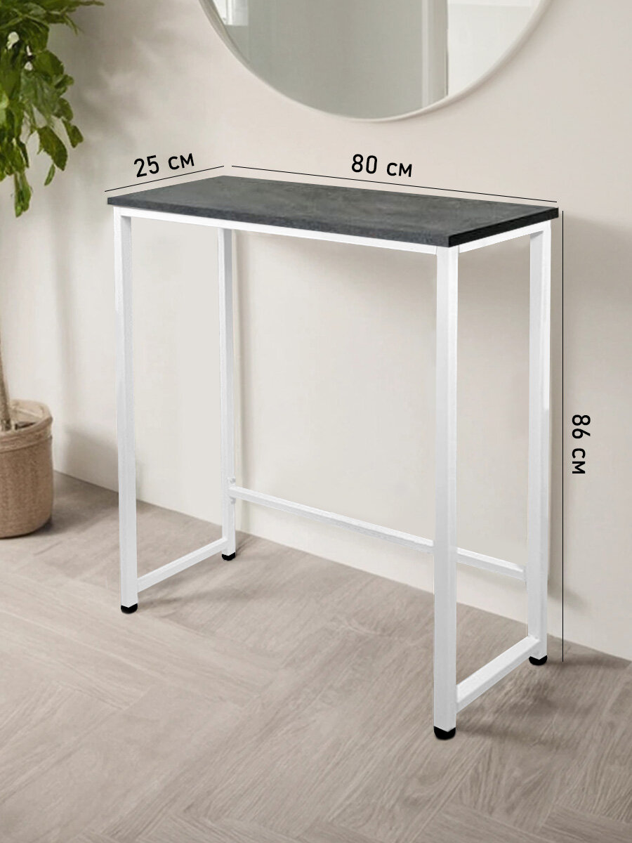 Стол консольный узкий в стиле лофт станет изящным украшением вашей прихожей и коридоре, привнесет в дом нотки изысканности. Стильный дизайн подходит под любой интерьер — от классики до минимализма. Прочный белый глянцевый каркас выполнен из металлического профиля 20х20 мм. Благодаря своей надежности, изделие выдержит высокую нагрузку до 100 кг.