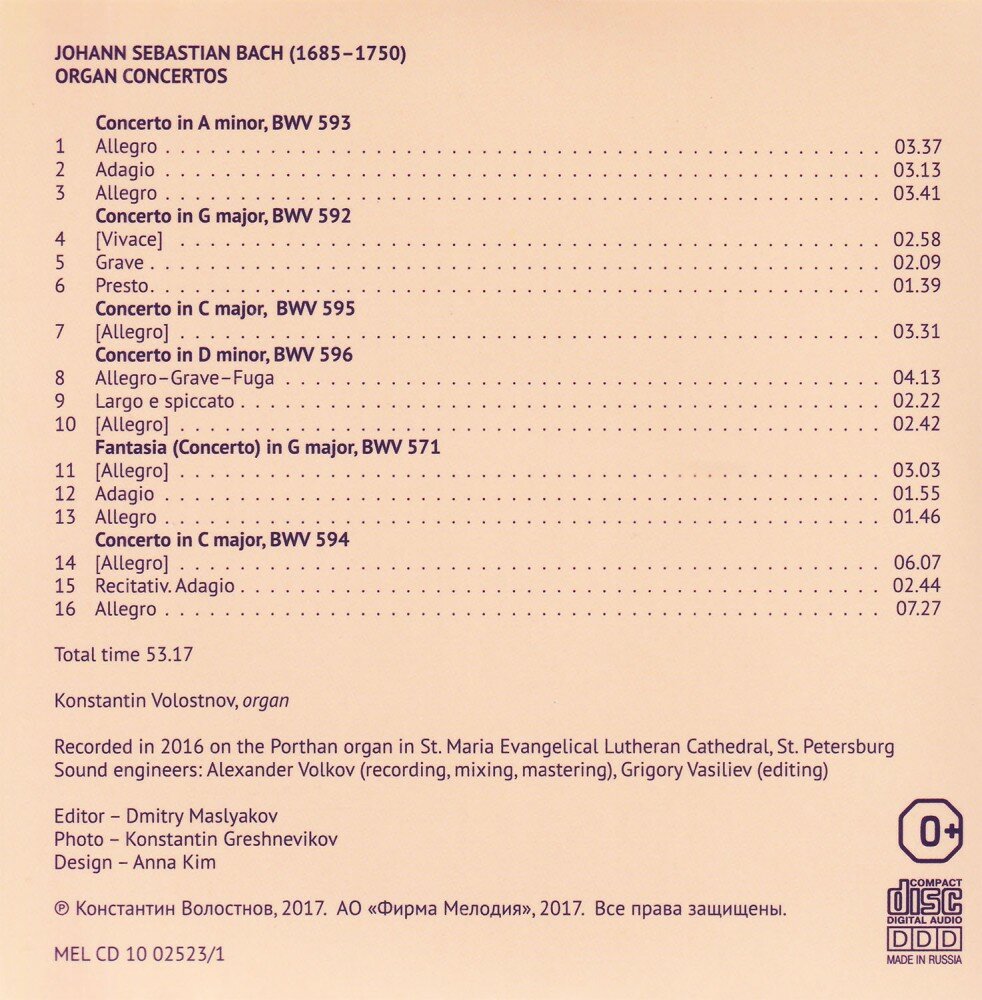 Купить Константин Волостнов. Bach, Johann Sebastian. Концерты, сонаты и токкаты для органа (3 CD) (2017 год, СД диск, Подарочная упаковка) с доставкой по всей России. Константин Волостнов. Bach, Johann Sebastian. Концерты, сонаты и токкаты для органа (3 CD) (2017 год, СД диск, Подарочная упаковка): сравнение цен, характеристики, фото, актуальное наличие и цены.