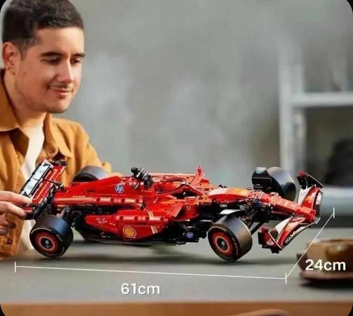 Еще одна модель из "формульной серии" - конструктор Формула 1 Ferrari SF-24. Для тех, у кого в коллекции уже есть болиды от McLaren и Mercedes, предлагаем добавить и красный спорткар от команды Ferrari. Ferrari SF-24 F1 отличается своей индивидуальной расцветкой с рекламой спонсоров команды. У машины поворачиваются колеса, выстроен дифференциал связи мотора и заднего привода колес. Можно откинуть крышку панелей мотора и увидеть имитацию работы 6 цилиндров. Масштаб модели 1:8. Длина Феррари в собранном виде - 61 см.