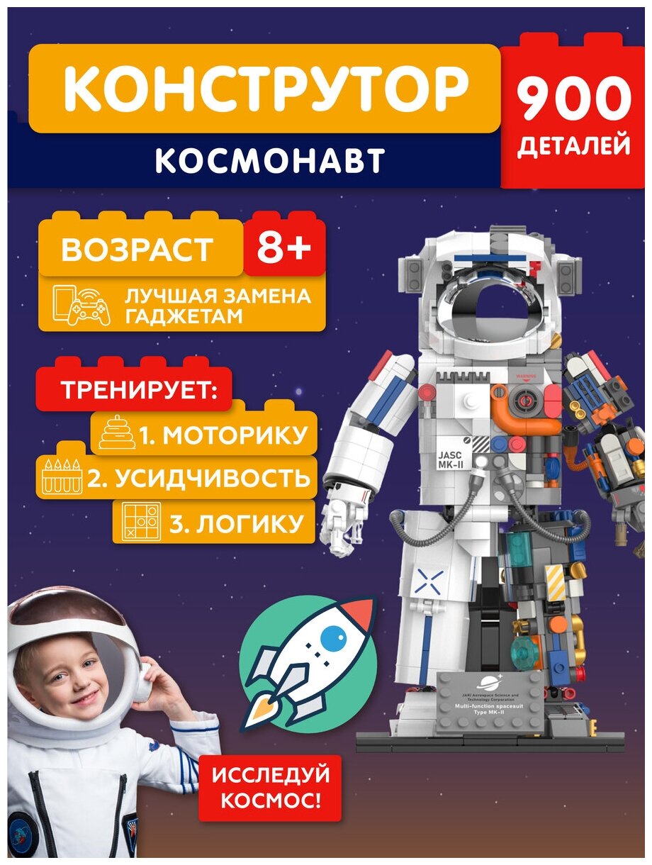 Конструктор JAKI Space POP JK9106 «Космонавт», 900 элементов, пластик, серый: сравнение цен, характеристики, фото, актуальное наличие и цены.