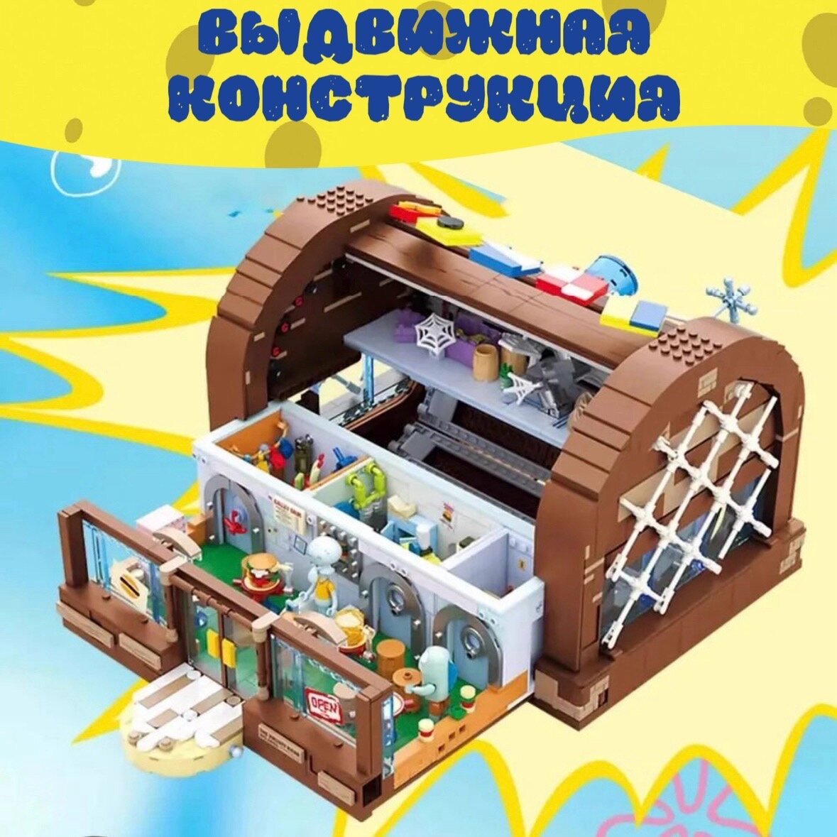 Конструктор включает в себя детали для создания ресторана "Красти Краб", где работают Спанч Боб и Сквидвард под руководством мудрого Мистера Краб. Это позволяет детям развивать свою фантазию, моторику и воспроизводить любимые сцены из мультфильма или придумывать собственные истории.