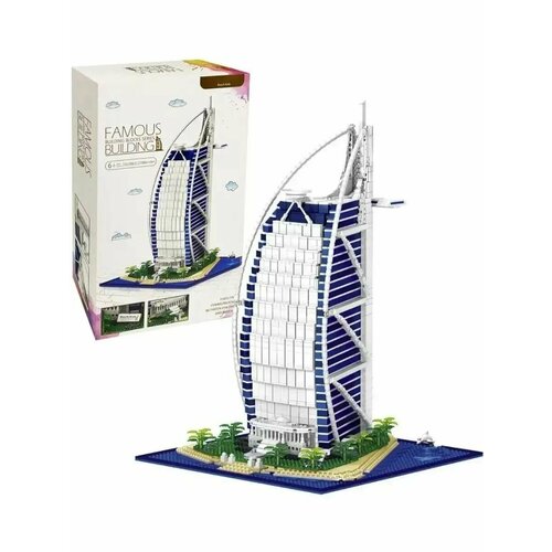 Конструктор «Hotel Burj Al Arab» . Набор принадлежит к разделу «Архитектура», к категории «Дома и Здания». Модель одного из самых известных и дорогих отелей мира не оставит равнодушным как юных, так и взрослых любителей конструирования. Знаменитый небоскреб, построенный на насыпном острове выглядит как парус, наполненный ветром. Насыщенные и яркие цвета, потрясающая детализация — все это доставит немало удовольствия как в процессе сборки, так и при размещении его на выставочной полке. Пополняйте коллекцию шедевров мировой архитектуры разных стран мира.