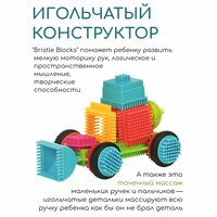 Bristle Blocks — бренд игольчатых конструкторов от компании BATTAT (Канада). Это оригинальные игольчатые конструкторы, которые помогут любознательному малышу развить пространственное и логическое мышление, мелкую моторику рук, творческие способности, научиться соотносить величину и форму предметов, а также помассируют маленькие ручки малыша. Особенность конструктора: • Точечный массаж маленьких ручек и пальчиков — игольчатые детальки массируют всю ручку ребенка как бы он не захватывал деталь. • Легкий в использовании — детальки плотно соединяются и разъединяются между собой: благодаря "иголочкам" детали конструктора можно соединять друг с другом практически в любых плоскостях. • Безопасный для малыша – все детальки изготовлены из мягкого первичного пластика и не имеют резкого запаха. • Красочный – у деталек насыщенные, но мягкие цвета, которые благоприятно влияют на психику ребенка. Можно собирать целые серии благодаря разнообразию ассортимента, а также есть вращающиеся детальки. Найти игрушки Bristle Blocks легко! Просто вбейте в поиске: бристл блокс, ББ, брист блок, блочный конструктор
