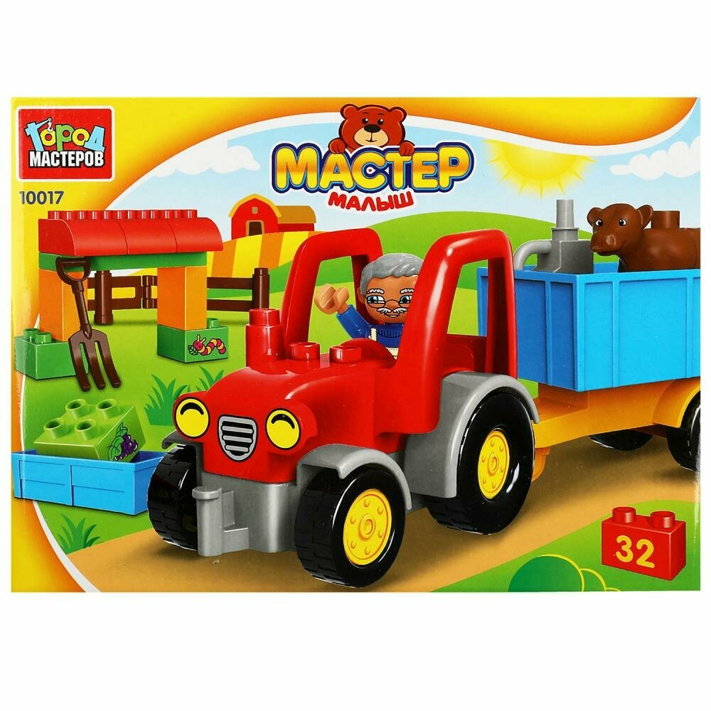 Конструктор большие кубики: Трактор с тележкой, 32 дет. Город Мастеров 10017-GK: сравнение цен, характеристики, фото, актуальное наличие и цены.